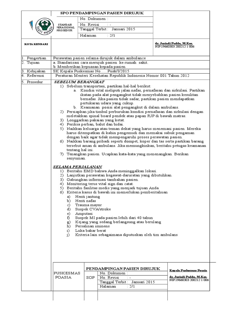 A lot more suggestion with respect to sample resume klinis pasien yang dirujuk is spo pendampingan pasien rujukan Rujukan Resume Klinis Pasien Yang Dirujuk D. Penanggung jawab di unit pelayanan melakukan sosialisasi formulir resume klinis pasien yang dirujuk dan menginstruksikan semua petugas agar mengisi formulir tersebut dengan benar dan lengkap setiap akan merujuk pasien. E. Paramedis Perujuk mengisi formulir dengan benar dan lengkap. F.